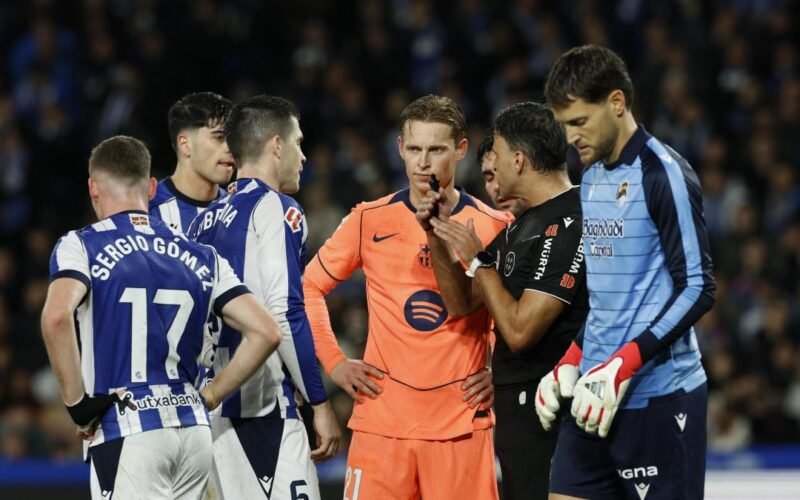 Frenkie de Jong se mostró muy crítico con el arbitraje de Gil Manzano en San Sebastián. Tras la derrota, el futbolista del Barcelona se quejó más que de las decisiones del tono altanero del colegiado extremeño. “No se puede arbitrar así. Lo que quiero decir es que no se puede hablar con el árbitro. Además, yo soy el capitán. Pero le hablas y te mira como si fuese más que tú”, reveló sobre la forma de llevar el partido.