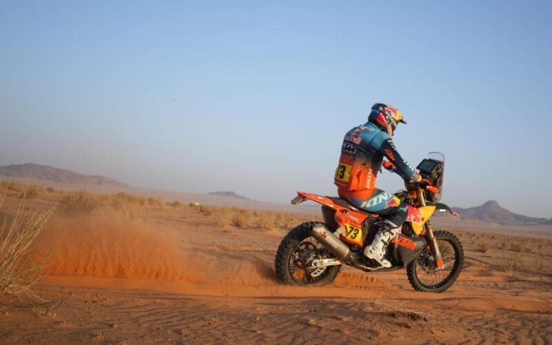 “Puede ser un drama”, avisaba Sanders al finalizar la primera parte de la maratón. Y es que en esta doble etapa no se permite la asistencia y las motos deben utilizar las mismas ruedas, por lo que los neumáticos sufren muchísimo en las difíciles condiciones del desierto rocoso. Recibir la ayuda de otro piloto tampoco era una opción ya que las normas establecen que de darse esta situación, ambos serían castigados con una penalización de 6 horas, por lo que los pilotos están solos ante el peligro.