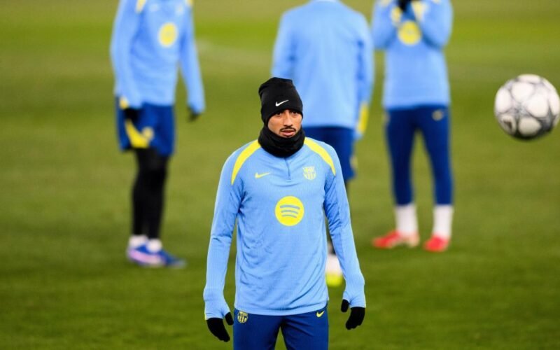 Sin Ter Stegen, que ya es jugador del Girona hasta final de curso; João Cancelo, que no puede ser inscrito en la Champions hasta febrero; el sancionado Lamine Yamal y el lesionado Ferran Torres, pero con Raphinha y Pedri listos, el equipo de Flick sale con el siguiente once: