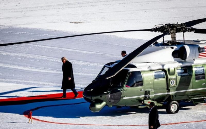 La alfombra roja recibió a Trump en el helipuerto de Davos